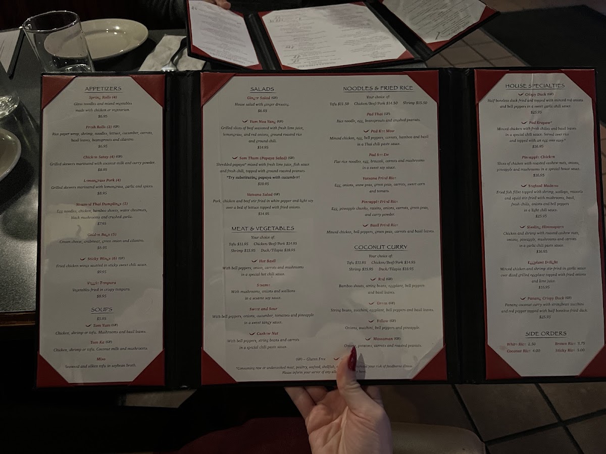 Minced chicken, egg, bell peppers, carrots, bamboo and basil in a Thai chili paste sauce.